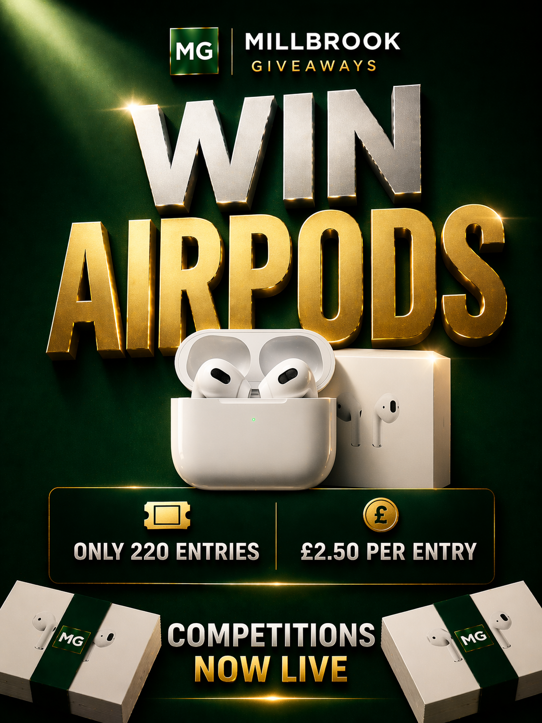 A brand new pair of Apple AirPods Pro โ straight to your door. ๐ฆ Active Noise Cancellation, Transparency mode, and up to 30 hours battery life. Worth ยฃ250 retail.